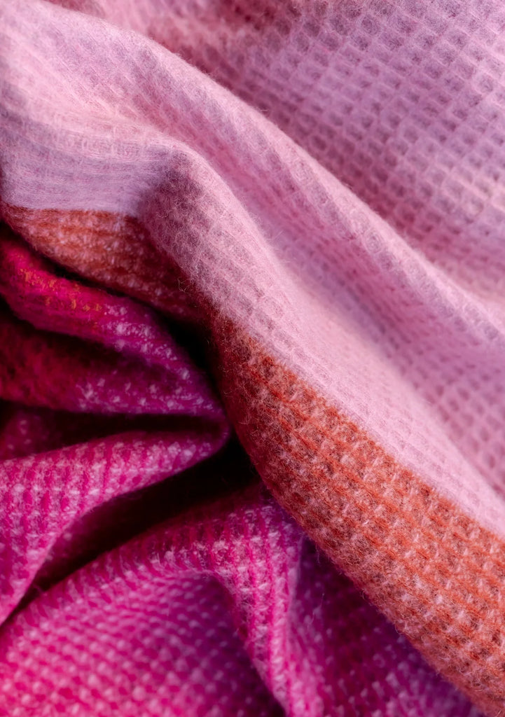 Waffle Wool Blanket - Pink Block