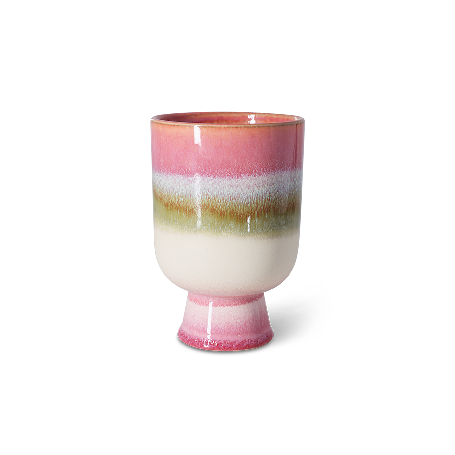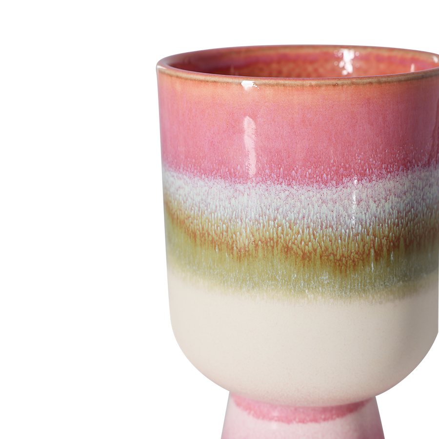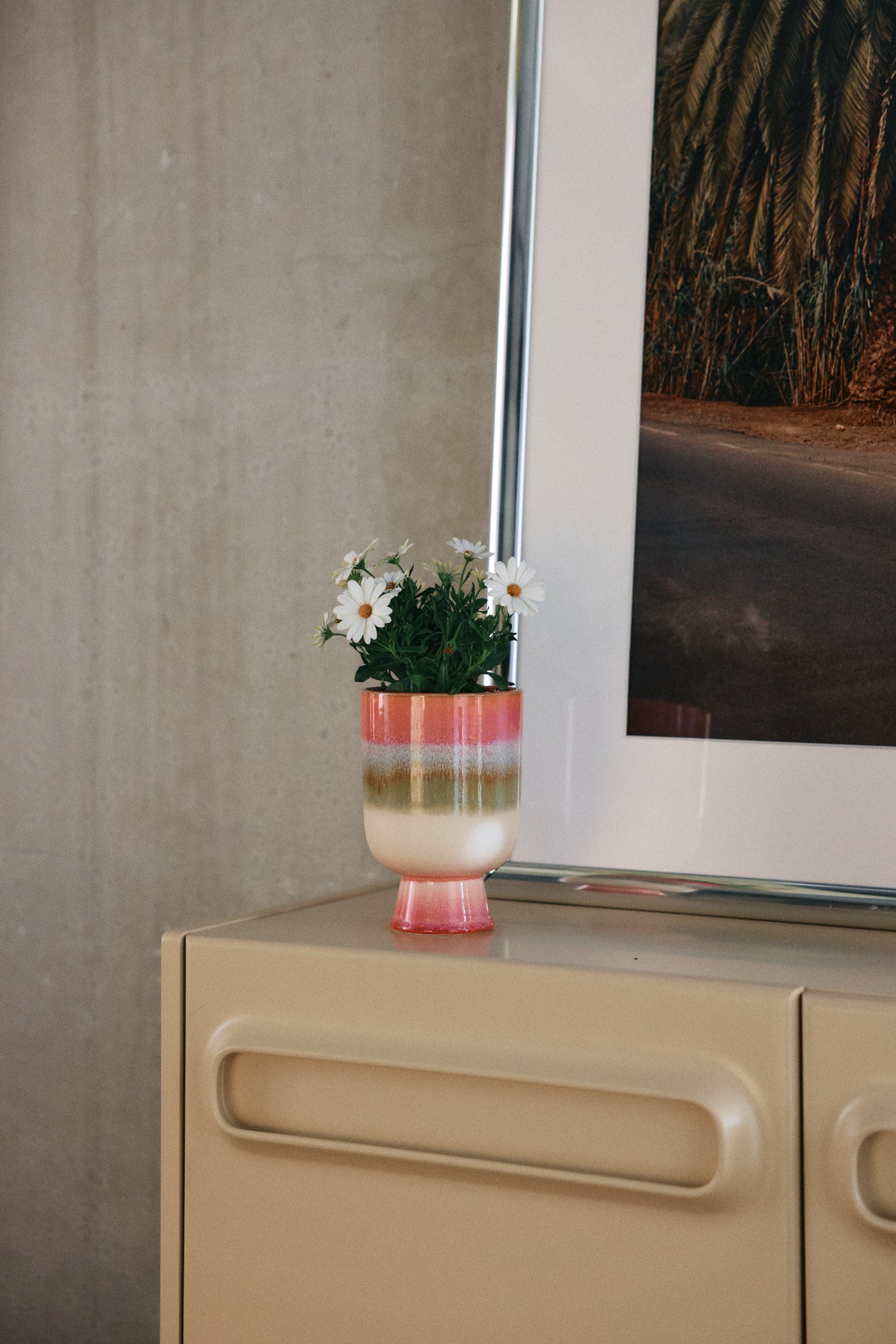 Handmálaður keramík blómapottur í 'retro' stíl.