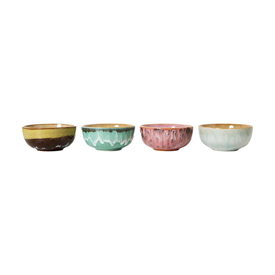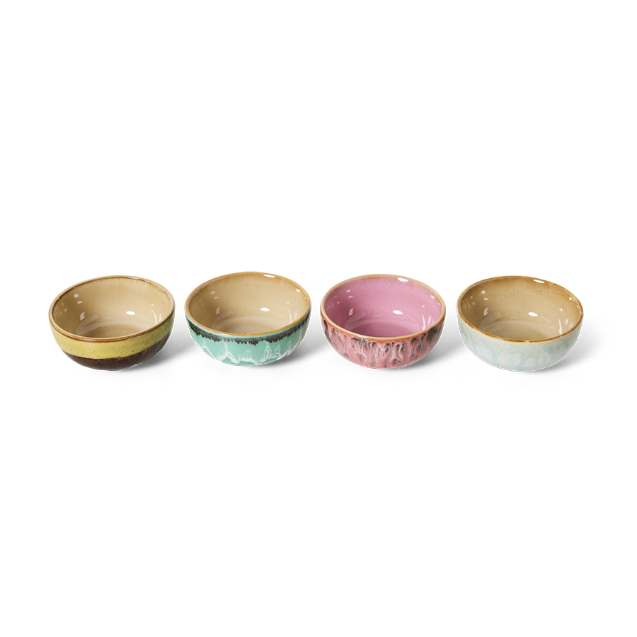 Litlar keramík skálar úr 70's línunni frá HKliving. 4 stk. saman í pakka