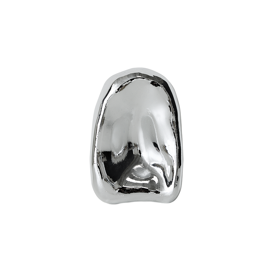 Krómaður glerskúlptúr sem hægt er að hafa á borði eða hengja á vegg.
