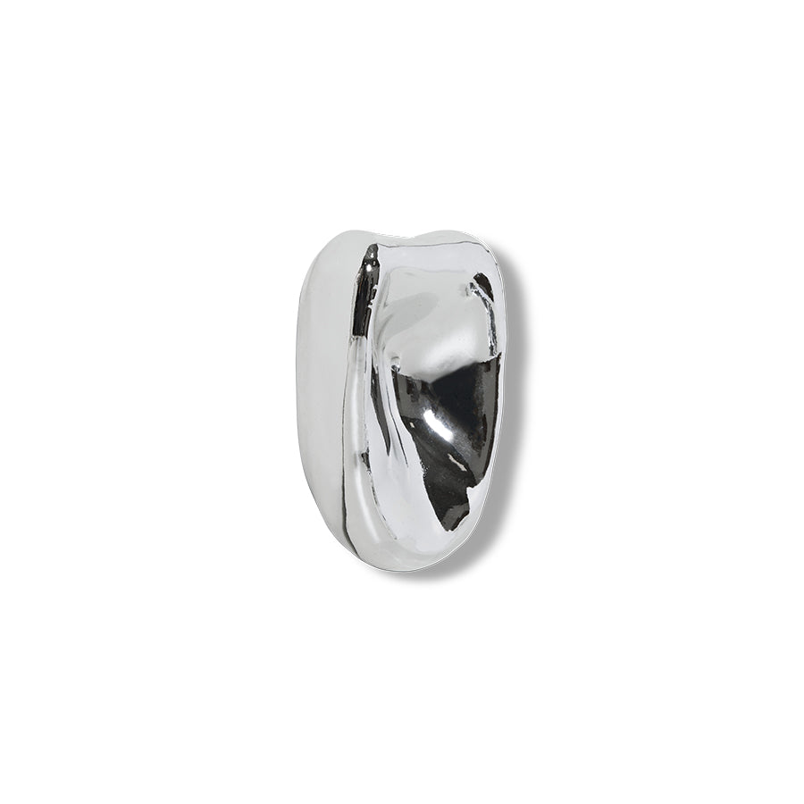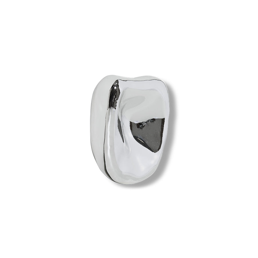 Krómaður glerskúlptúr sem hægt er að hafa á borði eða hengja á vegg.