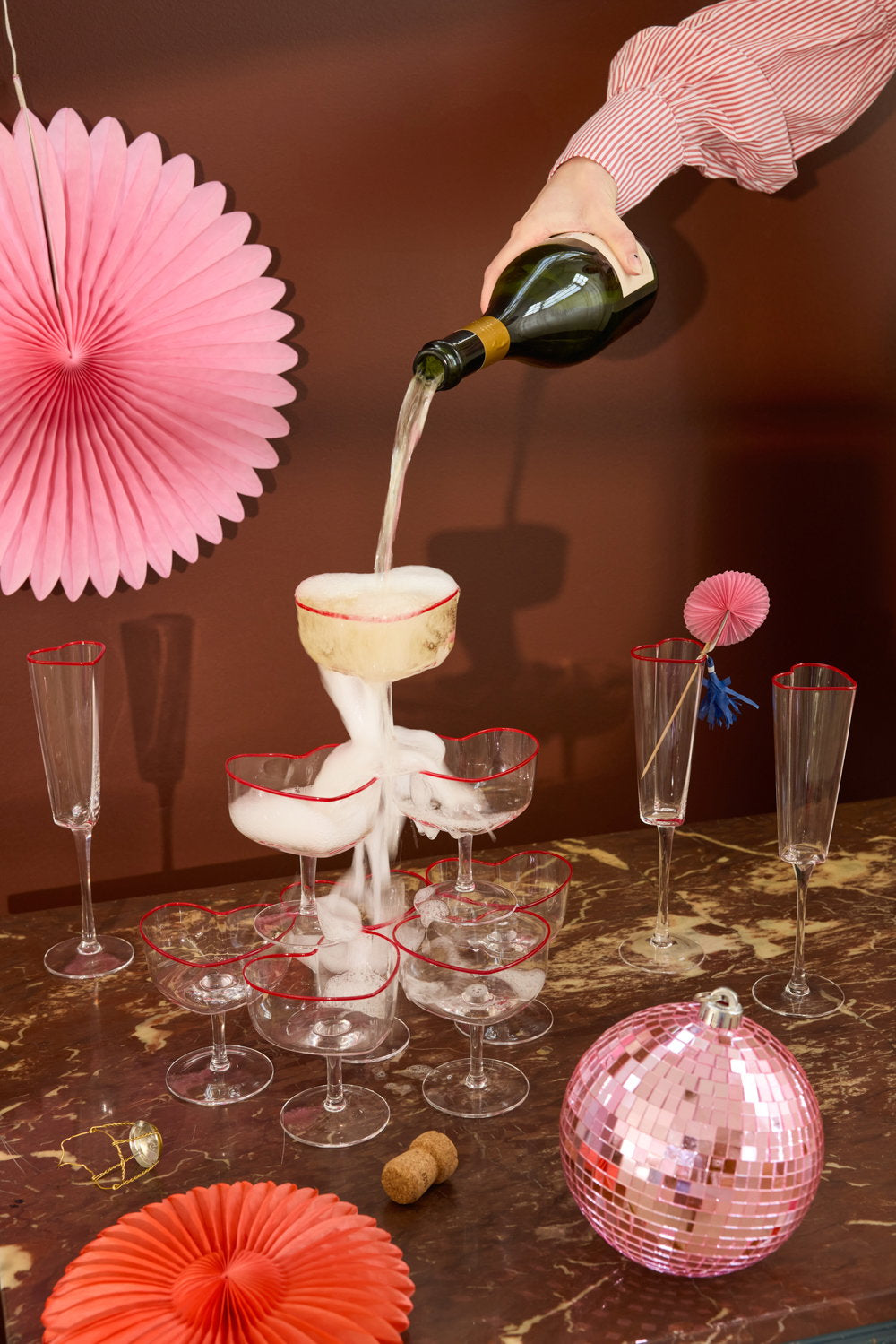 Kampavínsglas sem er eins og hjarta í laginu.