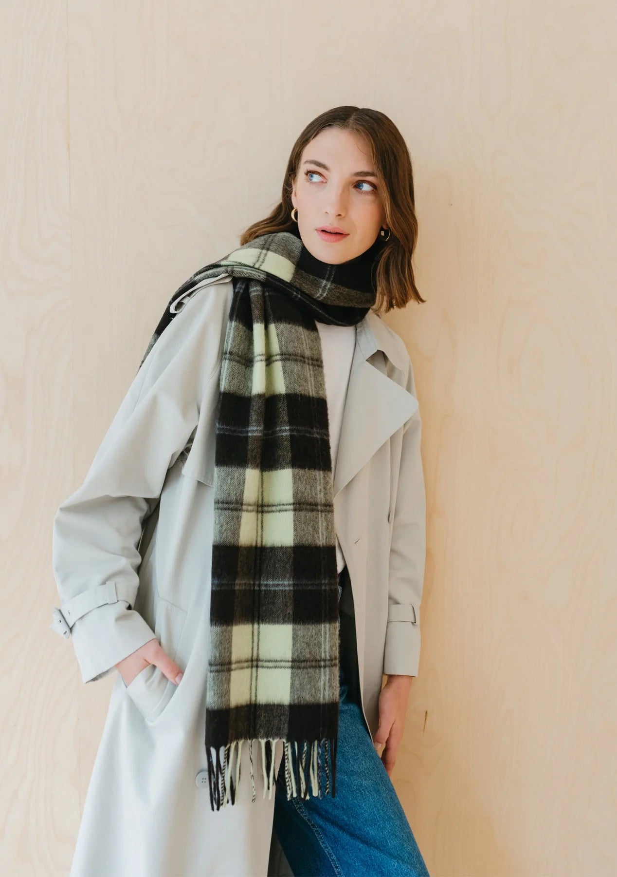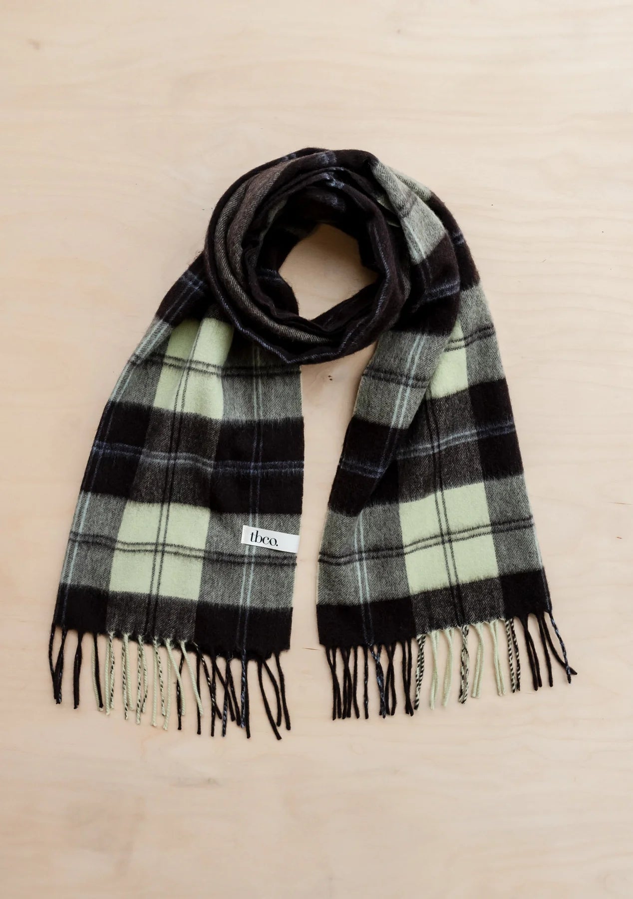 Merging timeless patterns with modern colours is what we do best. Elevate your outfit with this fringed check TBCo scarf that features lime green, chocolate brown and a hint of baby blue. It's woven from soft and thermo-regulating lambswool for optimised comfort and warmth.