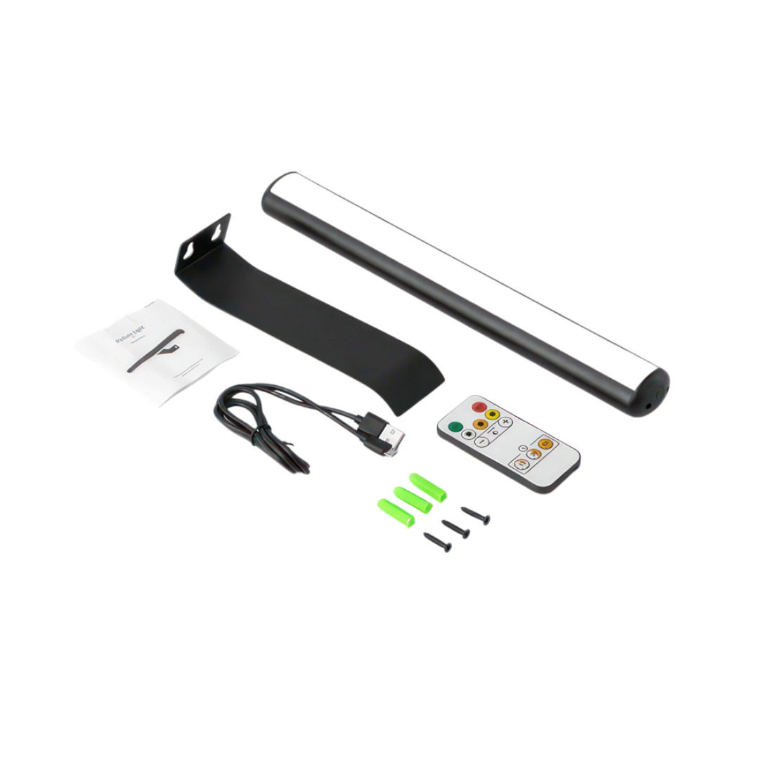 Með ljósinu fylgir ljósastæði, veggfesting, fjarstýring og USB-C hleðslusnúra.